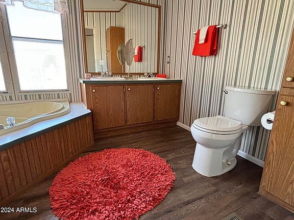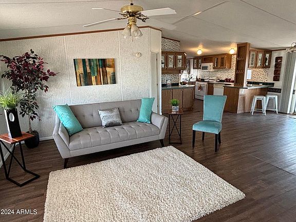 Stunningly crafted 3-bedroom, 2-bathroom residence situated on an expansive double-sized lot now up for grabs... This property boasts one of the most generous plots in the neighborhood. Revel in the convenience of the split floorplan, accentuated by a spacious central social area that seamlessly connects the living spaces. Embrace the versatility of the double carport, offering ample room for RVs, trailers, and all your recreational gear. Indulge in the delights of fully matured citrus trees, promising the freshest, most tantalizing oranges you've ever savored. Abundant storage options await, while a nearby golf course and community pool provide the perfect retreat from scorching summer days. Since the property is TWO LOTS, they can be divided to make the dwelling lot a single lot.