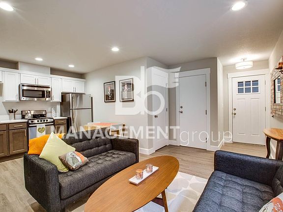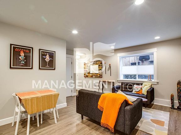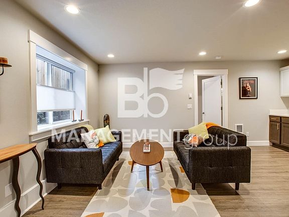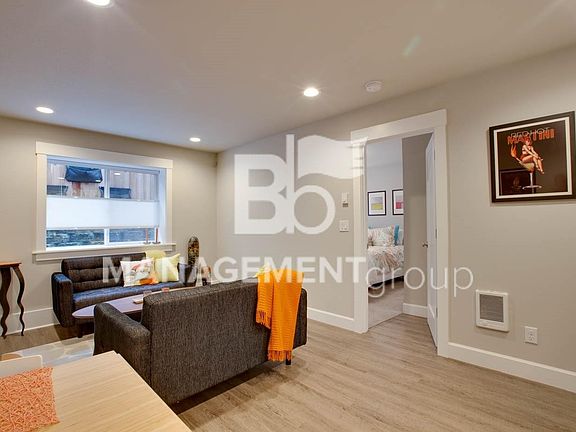 Sophisticated NE Portland basement ADU. Modern kitchen includes custom cabinetry, stainless steel appliances and white counter-tops. Large bedroom. Full bath with tiled shower and stack-able washer/dryer unit. Phenomenal location