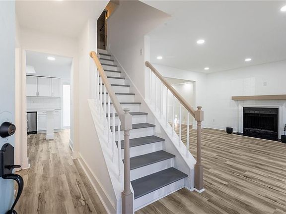 Front porchOpen dining roomSpacious stained back deckRecessed lightsSubway tile backsplashQuartz countertopsBeautiful updates