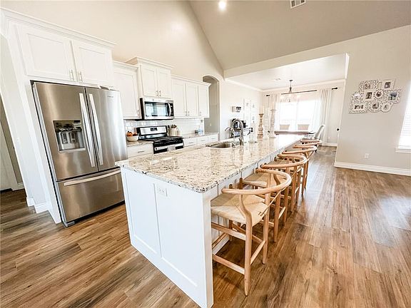 CALLING ALL INVESTORS! Look no further, this currently leased, 4 bedroom, 3 full bathroom home boasts vaulted ceiling's in the kitchen and living room with a wood beam spanning both. The open floor plan allows the fireplace to be seen at all angles. The kitchen has granite counters, a large island that is perfect for entertaining, and a breakfast nook. The formal dining room can be used as a playroom or office if needed. The large owners suit has an attached bathroom with soaking tub, separate tiled shower, and huge closet. The other 3 bedrooms have walk in closets and there is an additional 2 full bathrooms. You will not find any carpet in this home! It has luxury vinyl plank throughout. This home also features a walk in pantry, laundry room with built in countertop, whole home water softener, reverse osmosis, and in ground storm shelter in the garage.