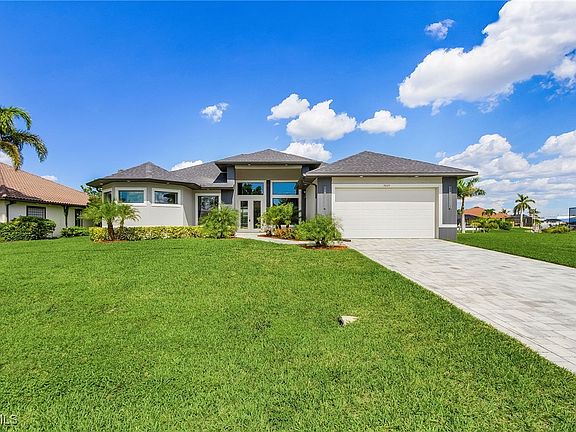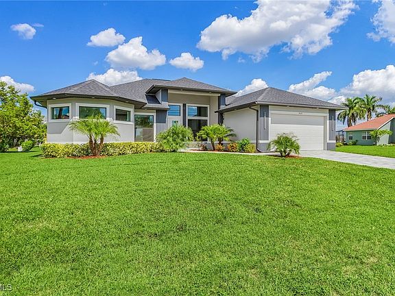 Experience the best of Florida living in this stunning Gulf-access home, perfectly situated on an oversized lot. Step inside and enjoy a spacious modern floor plan with soaring ceilings, 10' sliders, and wrap-around panoramic windows that flood the home with natural light. The open, split-bedroom design offers both comfort and privacy, ideal for family and guests. Built by an experienced builder with no expense spared, this home showcases premium finishes throughout, from rich wood cabinetry and granite counters in the kitchen and baths, to sleek modern appliances designed for today’s lifestyle. The builder’s signature open lanai spans the back of the home, overlooking a spectacular designer pool, outdoor kitchen, and expansive paver deck, perfect for entertaining or relaxing in your own private paradise. A paver driveway and walkway add to the home’s curb appeal, while the oversized garage provides plenty of storage. Conveniently located near main thoroughfares, with easy access to shopping, dining, and all the best Southwest Florida has to offer. This home is a must-see!