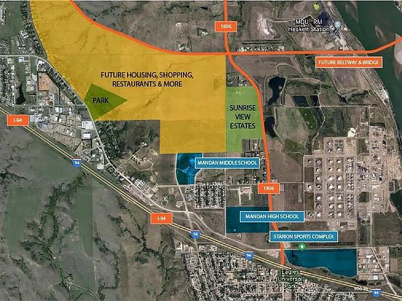 Generous sized lots in Mandan's newest development with beautiful Sunrise Views! Located just off 94, right in the heart of the latest amenities including shopping, restaurants, sports complex and schools. Included in this development will be a park, a retention pond, green space and the most amazing views! Future plans for a beltway and bridge that will give convenient access to all of the Bismarck/Mandan metro area. Use a builder of your choice to build your first home or your forever home in this growing part of Mandan.