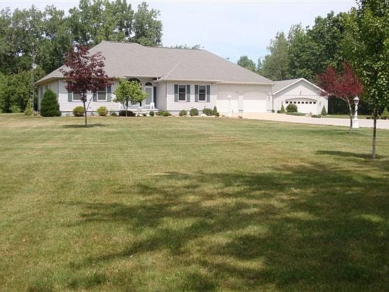 A RARE FIND! This custom built ranch style home sets far back off the road, giving you the feel of secluded acreage while still being close to all of the conveniences! Features include spacious open floor plan, master suite, 1st floor laundry, 3.5 baths, central air, finished basement with kitchen/2nd fireplace/family room. Sprinkler system, attached 2.5 car finished/heated garage with workshop PLUS 30x26 outbuilding. You must see this extraordinary home!