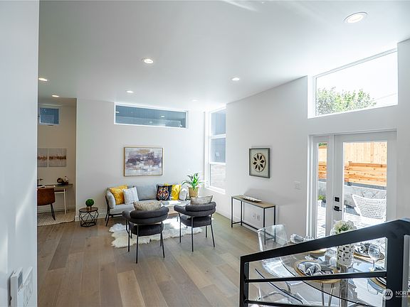 NEW 2 story home with heated garage/flex room. 2nd of 3 new homes. Soaring ceilings and southern exposure fill the home with natural light. Spacious living, dining and kitchen with glass door leading to a private patio bringing the outdoor space in, perfect for entertaining. Space for office beside kitchen and powder room on main. Thoughtfully configured to maximize flow, function, and efficiency. Stay cool with A/C in every room. Wide plank engineered hardwood throughout, no carpet at all. Bedrooms and bathrooms are on the 2nd floor. Heated floors in all bathrooms. Clerestory windows. Level 5 smooth drywall. Walk to Met Market and Magnolia Village. Easy access to Discovery Park, Ballard, Queen Anne, and DT Seattle. Top-ranked schools!