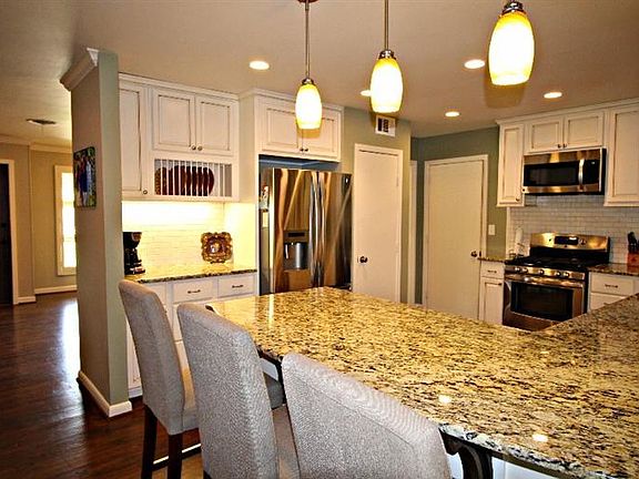 This is a truly amazing home and a must see! Beautifully remodeled with a wonderful granite kitchen and stainless steel appliances, including a nice gas range. Fabulous master with fireplace, separate coffee bar area, and atrium doors to wood deck. Amazing over-sized master bath with separate vanities, jet tub, over-sized shower, and double walk-in closets. Lots of wood floors, crown molding, ceiling fans, and storage. Nice mix of window coverings, including wood shutters. Family room has fireplace, wood beams, wet bar, and atrium doors to wood deck. Four bedrooms and four baths make this a great find! Storage building and magazine show yards/landscaping. Fresh hand painted exterior.