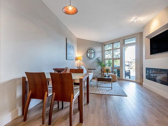 Welcome to Ravenwoods, located near the community of Deep Cove, 20 minutes to downtown Vancouver. This 859 sq ft spacious unit junior 2 bd (will fit a single bed) with two FULL bathrooms. It is located right on a beautiful water feature that feels like lakeside living. Enjoy a book on the patio while you listen to the sound of the infinity waterfall ahead. This very open unit has a large kitchen and island, great for entertaining, with gas stove top. The master bedroom has a queen bed with walk in closet and separate full bath, the 2nd room has a desk, book shelf and can host a single bed that can fold into a couch. The condo has a smart TV and all kitchen needs. An electric fireplace is great for a comfy winter movie night. Location: This sought after location is extremely favourable all year long, just 5 minutes to Cates Park beach with kayak rentals and just at the base of Mount Seymour for skiing and snowshoeing. There are many great forested trails near this peaceful oasis and only a 15-minute walk to grocery shopping, coffee shop, restaurants and a golf driving range. The unit also comes with access to a large gym, amenities room and theatre room. 1 parking spot, 1 storage unit, in-suite Laundry.