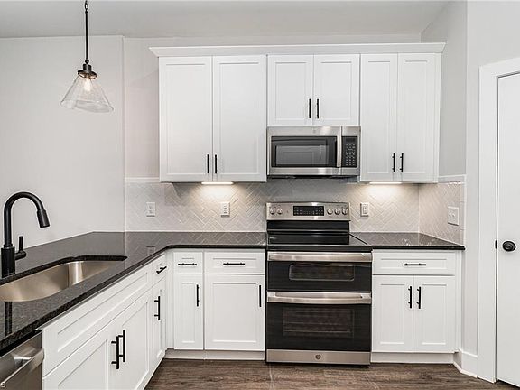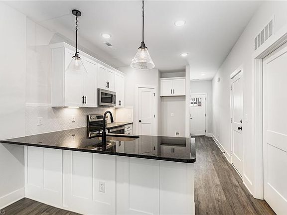 Spacious loftVaulted ceilingSleek kitchenFlexible storagePeninsula seatingGranite countertopsTile backsplash