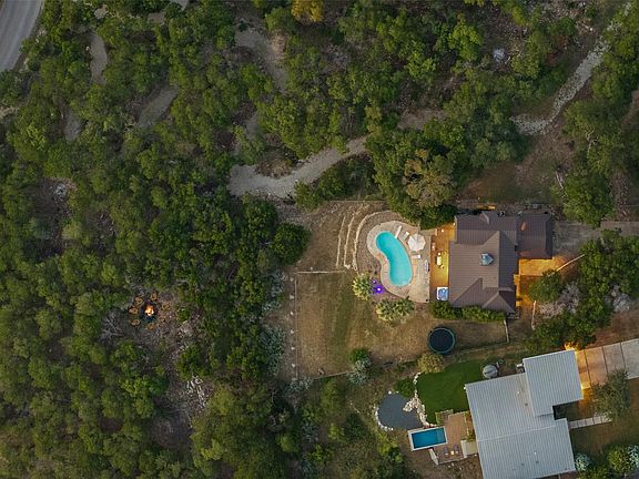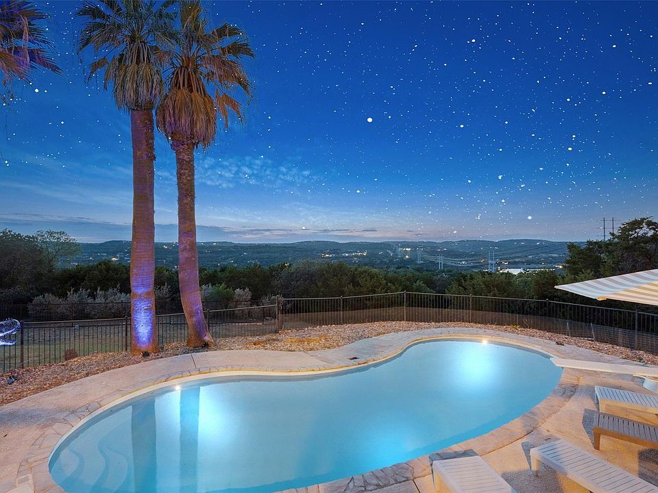 As twilight settles over the Hill Country, the stars emerge above your private hilltop retreat—one acre of serene elevation in coveted Spicewood, Texas, just moments from Rough Hollow Lakeway, where resort-style living and lakeside luxury blend effortlessly. Here, stargazing by the firepit becomes a nightly ritual and sunrises paint the sky above sweeping treetop views. This 4-bedroom, 3-bath haven offers more than 2,300 square feet of soulful living, with a pool that glows under moonlight and a hot tub poised perfectly for evening soaks beneath the palms. Step inside to discover vaulted ceilings, natural wood beams, and rich European oak floors that carry warmth throughout the thoughtfully updated interior. French doors open to the breeze, blending indoor elegance with outdoor splendor. By day, the poolside terrace is your escape—whether lounging under striped umbrellas, listening to cicadas from the hammock, or gathering around the fire table as the sun dips low. Indoors, two wood-burning fireplaces offer cozy bookends to your day, and a secondary upstairs lounge invites creativity, connection, or quiet retreat. The finished garage—complete with heating and AC—makes an ideal studio, gym, or workshop. The kitchen is outfitted with stainless appliances, granite counters, and crisp white cabinetry, while every space feels both current and character-rich. With a very low tax rate, minimal HOA restrictions, and zoning to highly acclaimed Lake Travis schools, this property balances freedom with investment value. You’ll also enjoy private access to a neighborhood boat launch, swim dock, and scenic park—your gateway to lake days and Hill Country adventure. Come home to something extraordinary—where every view is a masterpiece, and every day feels like a getaway.