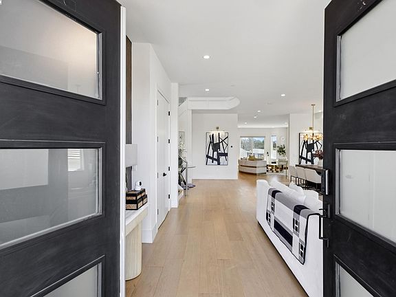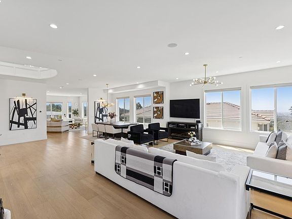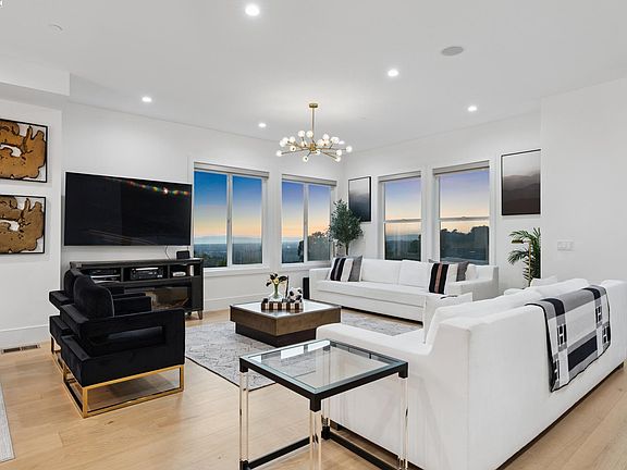 Stunning custom-built home in an exclusive gated community in the Fairview District with breathtaking Bay and SF skyline views. This 4-bedroom, 4-bathroom residence offers luxurious living with all ensuite bedrooms featuring walk-in closets. Step through the grand double doors into a soaring entry with a circular glass staircase and a custom chandelier. The open-concept layout features rich hardwood floors throughout, two full kitchens, including a prep kitchen, and two laundry rooms one on each level for added convenience. The main kitchen features premium appliances, quartz countertops, and modern finishes. Multiple view decks and large windows showcase panoramic vistas. The primary suite offers a spa-like bath with a soaking tub, walk-in shower, dual vanity, and custom tilework. Additional highlights include a paid-off solar system, EV charger, whole-house ventilation system, and beautifully landscaped outdoor spaces. A rare opportunity to own a showstopping home with privacy, functionality, and views in the Bay Area.