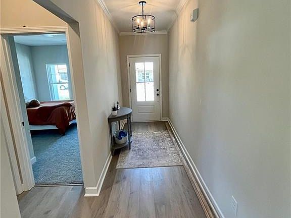 Gas log fireplaceGourmet kitchenLaminate hardwoodSpacious bonus roomCoffered ceilingCrown moldingZero entry