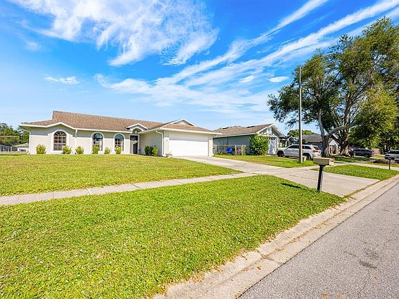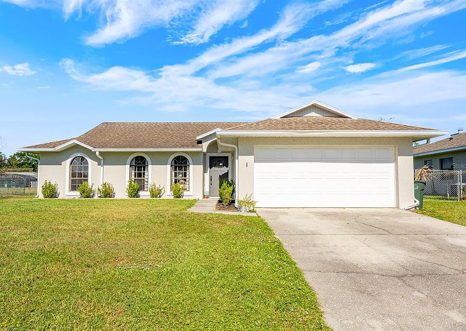 Welcome home to your new 3-bedroom, 2-bathroom pool home with beautiful pond views on a nearly 1/4 acre lot. This house features an open concept with vaulted ceilings, carpet, and fresh interior paint. The newly remodeled kitchen includes all new appliances and flooring. Both bathrooms are remodeled. This home has a large family room and master bedroom overlook the pool and pond. Master suite has a walk-in closet, pool/pond views, and a pool bath with a standalone shower. Heated pool, screened patio with outdoor shower, fenced backyard, and french doors leading to the pool area. Includes a new A/C system, newly refinished pool, 2-car garage, 2-car driveway, and is located in a well-maintained neighborhood near the Turnpike, shopping, and dining. Perfect for anyone starting out or an established family. The picture perfect home has been started on this painting canvas. With your vision, you will make this home a masterpiece.