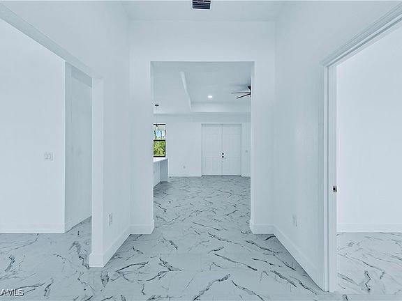 Welcome to this MAGNIFICENT (2024) Built over 1,900 sq ft 3/3 + DEN completed BRAND NEW CONSTRUCTION home nestled away on a quiet dead end in the highly desirable SW side! This GRAND ELEVATION with 8ft doors & tray ceilings spotlights an enticing porcelain tile throughout, gorgeous QUARTZ rainfall countertops with an awarding breakfast bar & 42 inch SOFT CLOSE shaker cabinets, IMPACT WINDOWS, and an IMPRESSIVE master bath featuring a desirable soaking tub accented by tiled walls & a FRAME-LESS glass walk-in shower. This spacious split floor plan also has a GUEST SUITE with a full bath & access to the enormous patio ready for a future outdoor kitchen GREAT for entertaining, PREMIUM fixtures, STAINLESS STEEL appliances, pendant & recessed lighting, and bypass mirror closet doors. It also highlights dual WALK-IN closets, a rewarding dual sink vanity, an admirable frosted glass door into the den, the laundry room under air with vanity tub & storage cabinets, and a useful walkway around the side of the house. This peaceful property has plenty of room for a pool & is located just minutes from all major amenities & a quick commute to Fort Myers. Schedule your showing today!