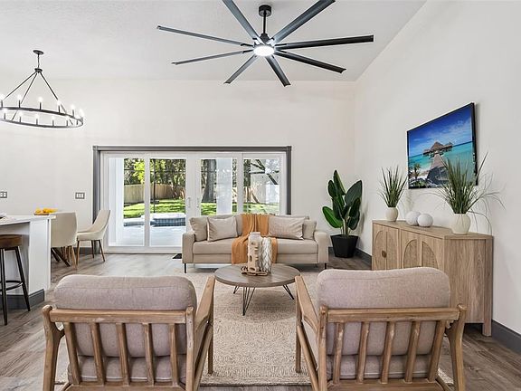 Discover refined living in this fully renovated pool home, perfectly situated in the highly desirable Saddlebrook community of Gotha. Blending timeless elegance with modern sophistication, this residence offers 5 spacious bedrooms, 4 full bathrooms, and a flexible floor plan designed to accommodate today’s lifestyle. The home’s unique layout features two luxurious primary suites, an in-law suite with a private entrance and sitting area, plus two additional guest bedrooms and a versatile office/den—easily convertible into a sixth bedroom, creating a true 6-bedroom, 4-bath retreat. At the heart of the home, the gourmet kitchen shines as a chef’s dream. A massive island anchors the space, complemented by custom cabinetry, quartz countertops, stainless steel appliances, and designer lighting. Open, airy living spaces flow seamlessly for both intimate gatherings and large-scale entertaining. Step outside to your private backyard oasis, where a screened-in pool and spa invite you to unwind or entertain in total tranquility. Surrounded by mature landscaping and a fully fenced yard, this outdoor retreat offers the ultimate in comfort and privacy. Every detail of this home has been thoughtfully curated, with high-end finishes and recent upgrades including: new interior and exterior paint, luxury vinyl and tile flooring, custom tile work in all bathrooms, upgraded cabinetry, refreshed landscaping, and more. You're also nestled within a well-established community, this property enjoys an enviable location close to major highways, ensuring convenient access to all amenities. Just minutes away, residents can indulge in excellent shopping opportunities, dine at a variety of luxury and casual eateries, and explore nearby theme parks for entertainment. The neighborhood benefits from proximity to brand-new, state-of-the-art hospitals and a top notch school system, providing peace of mind for residents seeking quality healthcare services and high end education for their family. This vibrant community offers an abundance of options to suit every lifestyle need and preference. Call today to schedule a private tour.