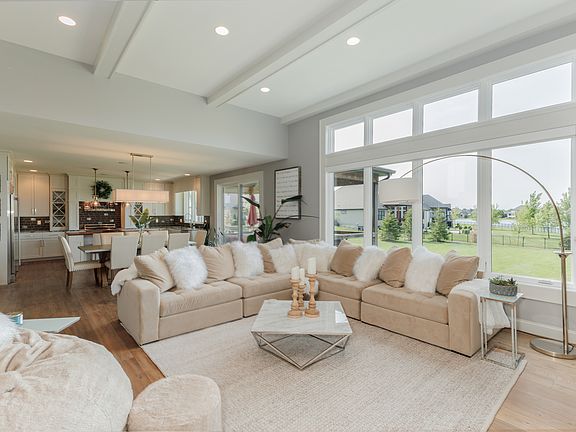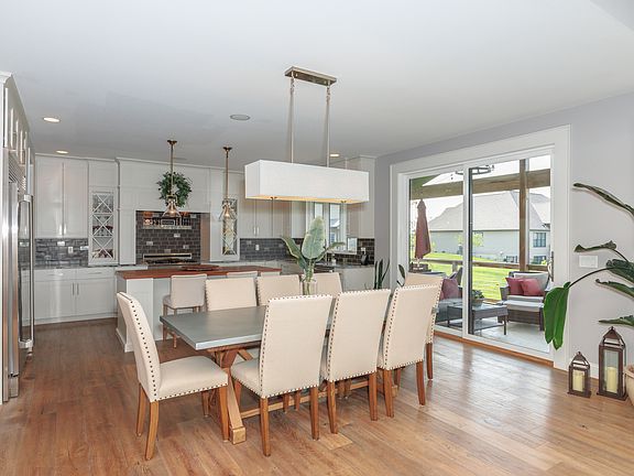 Absolutely stunning! Comfortable, casual elegance shows in every detail. This home offers 4 bedrooms, 4 full and 1 half bath, and a Grand Guest Suite with private bath. The open concept design displays high ceilings, 8' doors, and tons of light to show off beautiful hardwood floors. The great room features a wall of glass with a lake view and a stone feature wall with glass floating shelves and a space for entertainment devices. Dream custom kitchen includes a full sized stainless freezer/refrigerator combo, 6 burner gas range, microwave drawer, dishwasher. walk-in pantry and a huge island with seating. Double glass pocket doors provide privacy for the hearth room on the front of the house. The primary bedroom is on the main floor with a private bath and well designed walk in closet. On the mezzanine, you will discover the Grand Guest Suite - large enough to have a comfortable seating area, office space, plus room for table and chairs and/or a bedroom. On the second floor, there are 2 generous bedrooms with a Jack and Jill style bath. The lower level features a light filled huge family room as well as another bedroom and full bath. The unfinished area includes another egress window and 3 large storage rooms. The water heater and furnace/AC have been upgraded. The service area to the 3 car heated garage includes a walk-in closet for coats and storage plus a separate laundry room. Sonos surround sound system remains. Ring security equipment remains. Central vac system. Over half acre lot. Irrigation fed from lake with no charge for water. Please call for additional details! ENJOY!