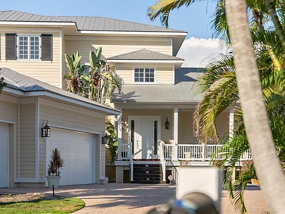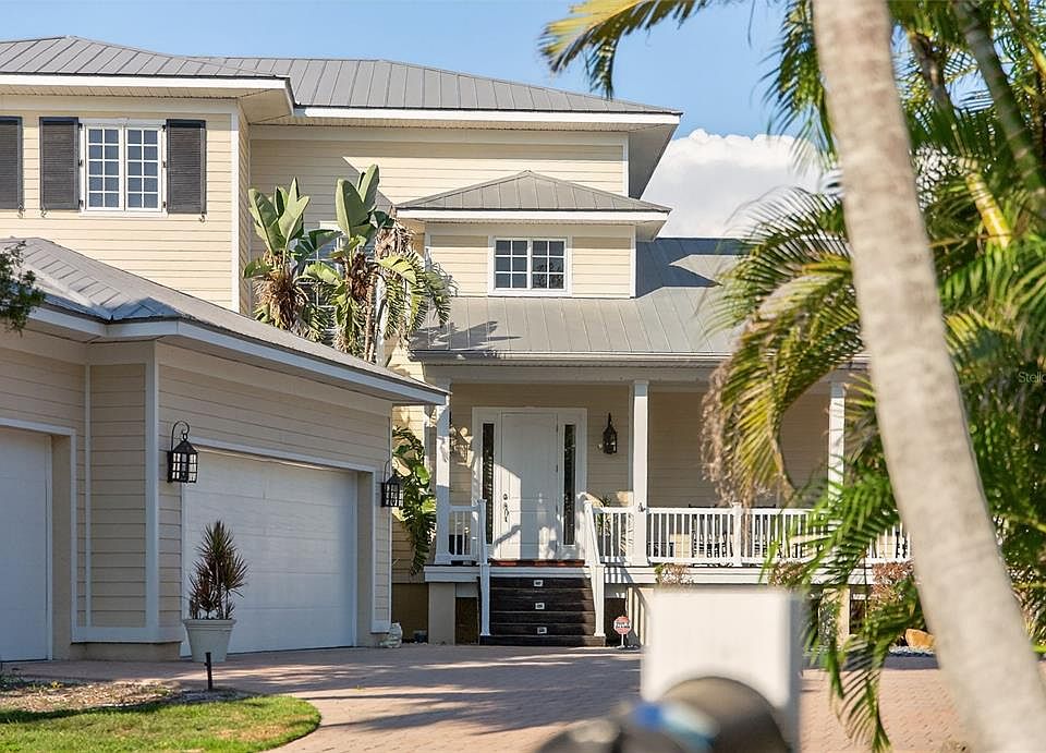 One or more photo(s) has been virtually staged. Exceptional Waterfront - North Siesta Key's Bay Island Boater's Dream - Exerience the best of coastal living in this elegant 4bd/4ba residence - just minutes to the Intracoastal Waterway. The home features a 2023 14,000lb dock/lift with electric and 3pnt moorage. Step inside a welcoming slate tile entry foyer to discover timeless quality design with Brazilian Ipe hardwood flooring throughout, hurricane rated windows and French doors and volume ceilings. At the heart of the home is a true cook's kitchen with Wolff Gas Range, built-in Sub-Zero stainless refrigerator, Fisher Paykel diswasher and soap-stone counter-tops. A true Chef's pantry, abundant cabinetry and full bar with wine refrigeration elevate the entertaining experience. The Primary Bedroom Suite, set in its own private wing, offers a tranquil retreat w/French Doors opening to a full private deck, perfect to enjoy sunrise and coffee; generous closet space and spa-inspired Bath; Guests Private wing and other rooms offer flexibility; French doors, automated window coverings, and architectural details create a refined and comfortable atmosphere. A full laundry room w/sink, office nook and mudroom are conveniently located off the 3-car garage. Outdoors, enjoy multiple covered decks, one with gas-fireplace for perfect evening waterfront ambiance; overlooking heated salt-water pool/spa; lush tropical landscape; Minutes to downtown Sarasota.