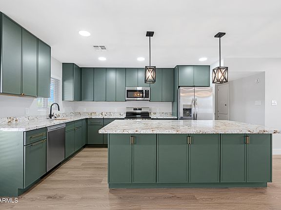 Welcome to your dream home, an exquisitely remodeled 5-bedroom, 2-bath residence offering the perfect blend of comfort, and functionality. Nestled in a vibrant Maryvale neighborhood, this home boasts a thoughtfully designed split floor plan, featuring a private mother-in-law suite with its own separate entrance, kitchenette, and serene privacy, ideal for multi-generational living or guests. From the moment you enter through the charming courtyard, you're greeted by an open concept layout and an elite grand kitchen, complete with premium fixtures, and expansive counter space, perfect for entertaining and everyday living.