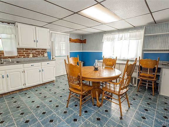 Farmhouse on one acre property & a 2 car garage. Enter into the mudroom, which leads to the eat in kitchen, first floor laundry off of the kitchen, & 4th bedroom could be used as a dining room or bonus room, living room is super cozy with a wood stove (which can be used for heat in addition to the forced air). Over 1500 sq ft of living space, 3-4 bedrooms & 2 full baths.