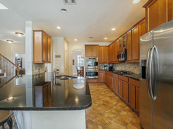 David Weekley 5 bedroom/4.5 bath/3 car garage+tandem. Generous size bedrms, 5th bedroom pre-wired for media. Kitchen has stainless appliances, pull out organization. Master suite down; huge gamerm w/storage closet. 2-story family rm open to kitchen w/views of oversized patio & large backyard. Walking distance to CISD Elementary & The Falls clubhouse w/fitness rm, pool, dog park, playground & conveniently located to Grand Pkwy, Hardy Toll Rd, & I45, Wdlands Mall. Zoned for new High School -2018.
