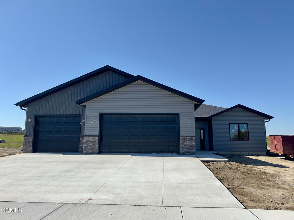 Be the first to own this new construction home in north Mandan. This slab-on-grade ranch-style home offers true single-level living with zero steps and the opportunity to choose your own flooring, lighting, and appliances. The open-concept layout seamlessly connects the kitchen, dining area, and living room—perfect for everyday living and entertaining. The spacious primary suite features a walk-in closet and a private bathroom with dual sinks and a beautifully tiled shower. Two additional bedrooms are conveniently located near a full bathroom and laundry area, just off the mudroom. The oversized, insulated, and heated 3-stall garage includes dual floor drains for added functionality. Step outside and unwind on the covered backyard patio. Located near shopping, dining and access to I-94.