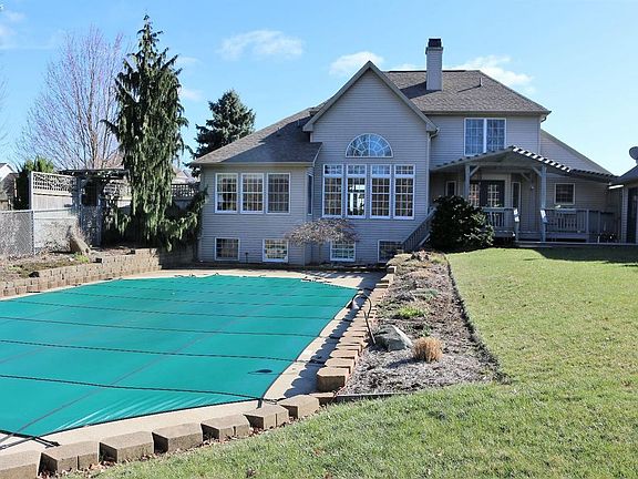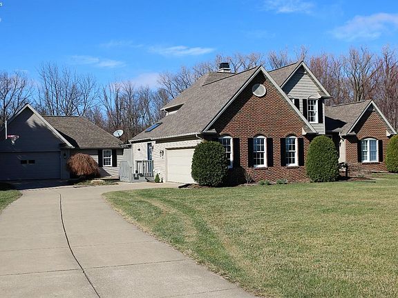 This 3-4 bedroom home is easy to love! From the appealing 1.49 acre cul-de-sac lot to the great floor plan with a first floor master. The kitchen offers new granite countertops, ceramic tile floor, eating bar and dining area with desk space. The living room and kitchen both enjoy the double sided fireplace. Living room has cathedral ceiling and a wall of windows that overlooks inground pool and spacious lot. Your first floor master has a updated private bath with granite counter, tiled shower and soaking tub. Walk-in closet and French doors out to sun room/sitting from master. Main floor office could also be a formal dining room. Two bedrooms and a full bath located upstairs. Full basement with a bedroom, large family room and full bath. You also have lots of unfinished space for storage. There is a 2 car attached side load garage plus a detached 2+ garage with workshop and 220 service. Fenced inground gas heated pool with solar cover will be easy to enjoy! Behind pool area is a lovely county setting. Basement not included in square footage.