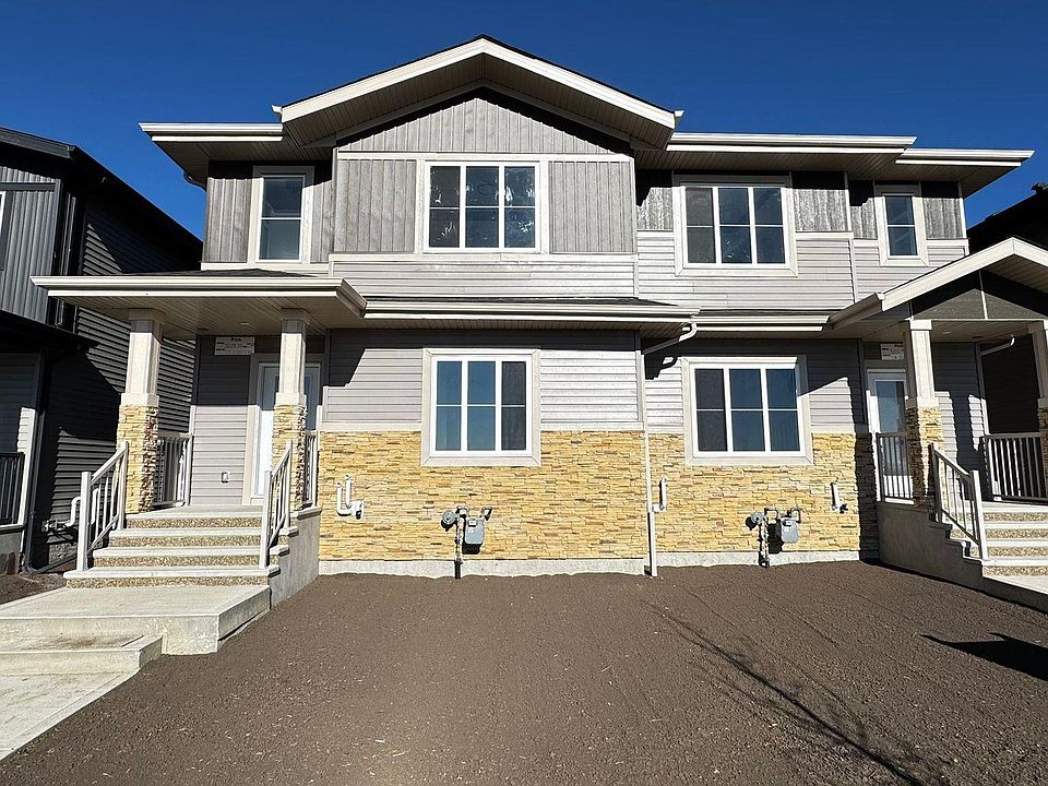 GST REBATE APPLIES! BRAND NEW HALF DUPLEX IN BEAUMONT! MAIN FLOOR DEN & FULL BATHROOM , DOUBLE DETACHED GARAGE, SEPARATE SIDE ENTRANCE FOR FUTURE DEVELOPMENT. Welcome to this beautifully built home by Efficient Homes offering over 1,600 sq. ft. of modern living. Featuring 3 bedrooms, bonus room and quartz countertops. Enjoy a DOUBLE DETACHED GARAGE and basement with two windows ready for future development. Located in a family-friendly community just opposite to future schools, parks, and shopping nearby. Don’t miss your chance to own this versatile and stylish home! Whether you're a growing family, a first-time homebuyer, or an investor seeking a quality property with income potential, this home checks all the boxes.