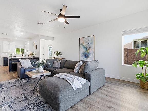 Welcome to this amazing, newly remodeled home in the fabulous community of Sun City Aliante. This adorable home offers and experience of a rich lifestyle in activity and social opportunities! Home features from brand new A/C unit, new tankless water heater, all new flooring, new cabinets and much more! A large great room and open floor plan and dine-in kitchen, which includes quartz countertops, window blinds throughout. The Primary offers a nice walk in closet and separate from 2ry bedroom. Amazing amenities which include club house, tennis, pickeball, swimming, sauna, spa, exercise equipment, dance studio, meeting room, crafts, social hall, library & billiard room! Close to freeways, public golf, shopping, dining and Aliante Hotel & Casino!