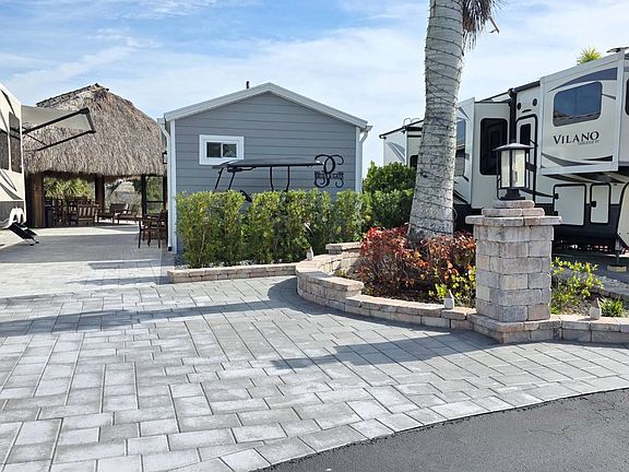 Silver Palm RV Resort - 5-Star Living Located in the highly desirable Silver Palm RV Resort, this exceptional property offers luxury and comfort throughout. The expansive 25 x 30 Tiki features wider beams, a fully screened top, and remote-controlled hurricane screens, creating the perfect outdoor living space. An outdoor kitchen makes entertaining effortless. The Casita is beautifully finished and includes a fireplace, shower, stove, and two sets of patio doors. It is fully insulated and equipped with a mini-split system backed by a 10-year warranty, providing year-round comfort. The 2022 fifth wheel is well appointed with two new A/C units, a fireplace, washer and dryer, king-size bed, ample storage, and a thoughtfully designed layout. Turn key.