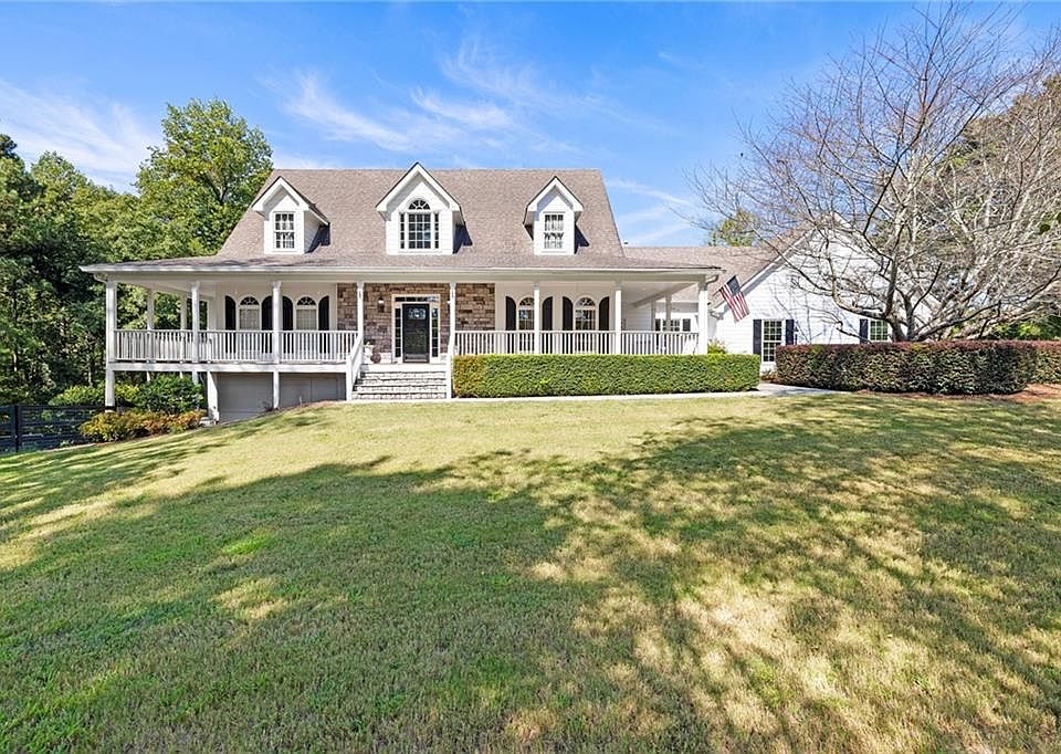 This exceptional gated equestrian estate on 15+ private acres blends luxury living with high-end equestrian design in Buford, just minutes from Lake Lanier, I-985, shopping, dining, Chateau Elan and Northeast Georgia Medical Center. Located behind a private neighborhood gate shared with only two other residences, the property continues through its own second electric gate, creating a uniquely secluded arrival. A deep porch leads into a dramatic two-story foyer and family room with cathedral ceilings, a sweeping staircase, double-sided stone fireplace, spacious kitchen with leathered granite, walk-in pantry/mudroom/laundry, wet bar with glass cabinetry, and real hardwood flooring. The primary suite on main level overlooks the private backyard and features a spa-style bath with frameless double shower, soaking tub, dual vanities, and custom closet. Upstairs are two private ensuite bedroom suites. The finished terrace level is ideal for guests or multigenerational living, including a full kitchen, family room with fireplace, flex spaces, bedroom, full bath, and abundant storage. Outdoor living is equally impressive with a fenced backyard, cocktail pool, patio for firepit, and large covered front and back porches ideal for entertaining or enjoying peaceful sunset views. Recent major upgrades - a brand-new architectural roof (Oct. 2025), new HVAC system, and a whole-house generator to ensure performance and peace of mind The property has been transformed into a turnkey equestrian retreat with approximately 7.5 acres of pastures and facilities. The custom barn (approximately 44'x50') features sliding doors front and back, 5 oversized 12'x16' stalls with European stall fronts, closable stall windows, stall fans, rubber stall mattresses, a heated and cooled tack room, feed room, indoor wash rack with hot water and overhead heaters, metal conduit for power with a covered outlet at each stall, frost-free water pumps, and hall fans for ventilation. The covered riding arena (approximately 70'x136') includes top-of-the-line rubber footing, 4.5’ kick walls, 70’ of mirrors on the short side, and solar-powered speakers. There are 5 fenced pastures, reseeded and treated, with board fencing plus additional 2x4 wire for safety. Another 7 acres of cleared trails weave through the wooded portion of the property. This estate offers the rare combination of complete privacy, resort-style outdoor living, and a turnkey equestrian setup, all just minutes from modern conveniences. A rare combination of privacy, luxury, and convenience!