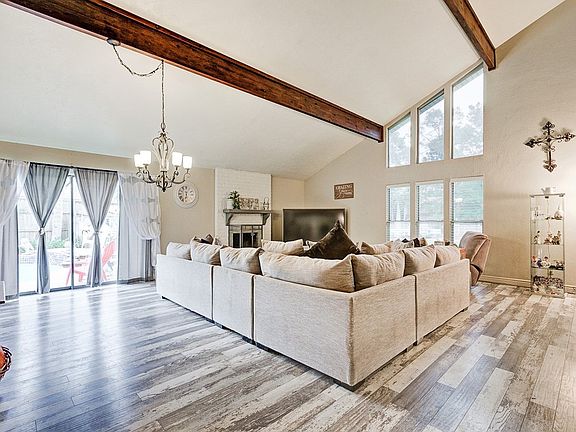 Lovely four bedroom, three bath home in Nederland schools has an in-ground pool! The living room has high ceilings with gorgeous exposed beams, a wood-burning fireplace, and lots of natural light. The kitchen offers pretty granite, bar, dining, and a breakfast room. Bedroom and bath down and three bedrooms, two bath upstairs. The upstairs master offers this cool storage area perfect for craft or office space. Great backyard with a covered patio, pool & spa, luscious landscaping, and side gate for access. This is a wonderful property in a prime location.