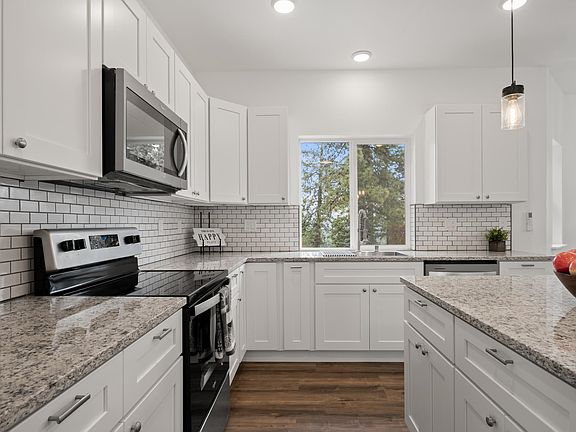 This NEW Construction home boasts both city & tree lined views. The granite countertops throughout, and an eating bar that seamlessly integrates with the expansive great room that includes a cozy gas fireplace. Relax and enjoy evening BBQ's on the deck & morning coffee on the covered porch. Spanning over 2,300 SQFT, this home encompasses 3 bedrooms, plus an office on the first floor that could also be a 4th bedroom, and 2.5 bathrooms. The primary suite features a large bath with walk in shower, separate tub, and walk-in-closet. This home is equipped with mini-splits for energy-efficient zonal heating and cooling. Nestled in a quiet neighborhood, just minutes from amenities, including downtown as well as the Spokane Airport.