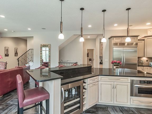 Price reduced & new carpet & pad 2nd lvl Lovely 1.5 story o home nestled in the trees on 3.43 acres in beautiful Hickory Lodge just minutes from WDM. Garages for 6 cars Great floor plan 2 staircases & family rm with 21 ft ceiling Lower & main lvls have 10 ft ceilings Dramatic entry with gorgeous custom curved staircase with wrought iron railing & hrdwood steps. Office is vaulted custom white built-ins. Mstr suite is so romantic fp & sitting area & custom closet shelving. Large kitchen & hearth rm area flows to screened in tiled porch & deck. Kitchen has Viking comm hood & range 2 ovens Wine frig & built-in frig also inc. Lwr lvl has cozy wine cellar, theater rm (2018 where equip & recliners stay, sun rm, 5th bdrm & ¾ bath. 2nd lvl has 3 bdrms ea own bath & walk-in closets. 2 geothermal units, irrig, new shingles 18, stone firepit flagstone patio access & path to creek. Sec syst, sec cameras, av equip, water softener inc. All furnishings negtbl. Beautiful home