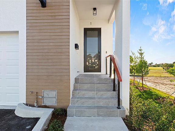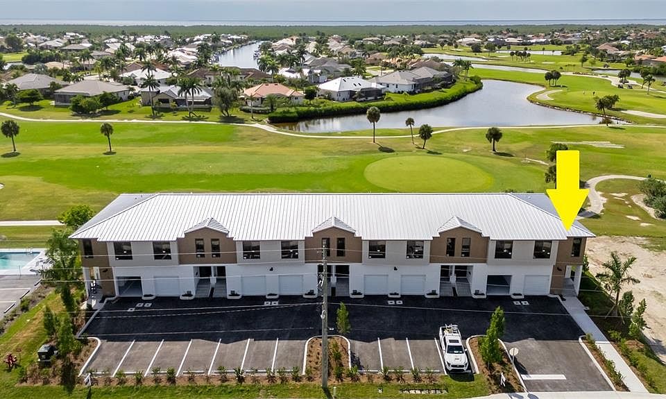 Experience contemporary living in this BRAND-NEW 2025 two-story 3 Bedroom, 2.5 bathroom, 1 Car Garage, END UNIT townhome perfectly positioned along the scenic fairways of St. Andrews Golf Course in Punta Gorda. Designed with a modern, streamlined aesthetic, each home features luxury vinyl flooring throughout, high ceilings, and a bright open floor plan designed for effortless entertaining. The stylish kitchen offers stone countertops, a tiled backsplash, stainless steel appliances including a glass cooktop, an island with a breakfast bar, and a convenient cabinet pantry. A main-floor half bath adds extra functionality. Upstairs, all bedrooms are thoughtfully positioned for privacy. The primary suite includes a walk-in closet and an en-suite bathroom with a dual-sink vanity and a walk-in shower. The guest bedrooms also feature walk-in closets and share a well-appointed guest bathroom with a shower/tub combo. An upstairs laundry closet adds ease to everyday living. Each unit comes with a front "smart lock" and a nest thermostat. Enjoy all the amenities Punta Gorda has to offer—biking, fishing, boating, dining, live entertainment, and more—while being just minutes from Fishermen’s Village, Ponce de Leon Park, Gilchrist Park, and historic downtown. You’re also a short drive to award-winning beaches, including Englewood Beach, Manasota Key, and Stump Pass. With a prime location close to shopping, parks, and waterfront attractions, these townhomes blend comfort, style, and scenic views into an exceptional new-construction offering. Schedule your private tour TODAY!