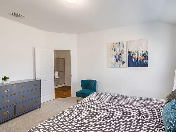 FULLY FURNISHED and meticulously maintained single story 4 bedroom, 2 bath home. Open concept plan, neutral palette with easy care flooring. Spacious light and bright kitchen boasts gas range, granite counters, breakfast bar & ample cabinetry for storage & prep. The primary bedroom with large ensuite bath offers an oversized walk-in shower and closet plus open shelving storage. The 4th bedroom is located at the front of the house and is perfect for a guest room or dedicated office space. Relax and enjoy the private backyard with room for entertaining or outdoor activities. Great location with quick access to major roadways and only a short drive to Tesla's Gigafactory and Austin-Bergstrom International Airport!
