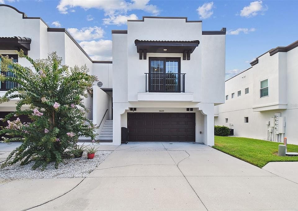 No damage in Helene or Milton. This battle-tested home is ready to be your sanctuary. The PGT hurricane Impact windows have kept the inside perfectly dry in all of the storms and provide the convenience not having to put up shutters. This property is not in a flood zone and benefits from excellent drainage, with multiple retention ponds in the neighborhood, providing peace of mind during heavy seasonal rains and hurricanes.This beautiful townhouse is energy efficient, has low hoa fees and a great location walking distance to Gadsden park, in a rare-for-the-area gated community. Step inside and be greeted by an abundance of natural light, thanks to numerous windows throughout the home. The spacious open layout is accentuated by recessed lighting, ceiling fans, crown molding, and stylish plantation shutters. The huge kitchen is a chef's dream, offering plenty of space, wood cabinets, stainless steel appliances, including a new refrigerator updated in 2022 and granite counter tops. Storage is no issue with ample closet space throughout the home. The townhouse features engineered birch wood floors throughout, with new wood floors installed in all bedrooms in 2022. The stairs have been beautifully remodeled with solid maple wood treads. Enjoy the efficiency of two air conditioners—one for each floor. The main floor air conditioner was replaced in 2022. The primary bedroom is a true retreat, featuring two closets, including a spacious walk-in, and a Juliet balcony that offers pleasant views of trees and the community pool. The en-suite bathroom has a dual sink vanity, granite counter tops, soaking tub, separate shower and a linen closet. Down stairs you will find 2 additional bedrooms with a large well equipped bathroom with dual sinks, granite counter tops and a toilet that is separated from the bathtub in its own little nook. There is a laundry room and a large hall closet that wraps around under the stairs. The 2 car garage has plenty of space for parking and storage including an additional closet. Low HOA fees include water, trash, pool, landscaping, lawn maintenance and reserves for roof and painting. Enjoy all of the convenience of South Tampa with an easy drive to downtown, Hyde Park, and all the restaurants and shopping with convenient access to St. Pete. You won't worry about schools with A-rated Chiaramonte elementary and Robinson high school and an easy drive to the hottest new k-8 magnet school Adum. List agent is owner.