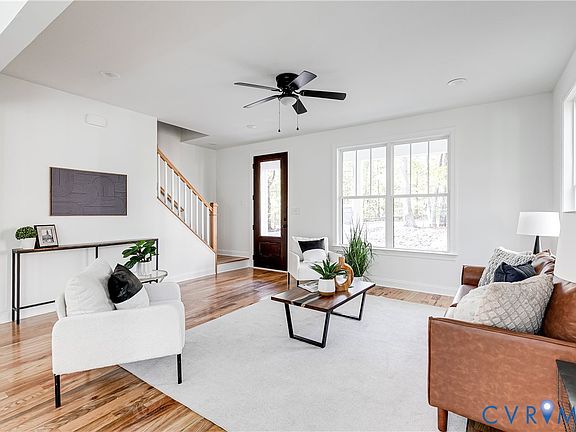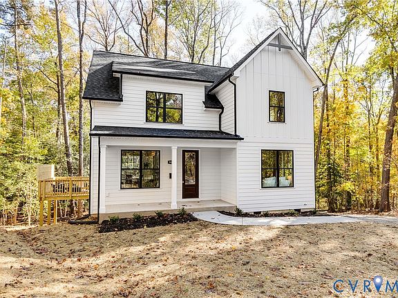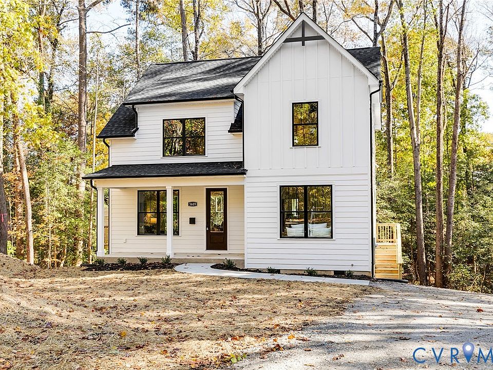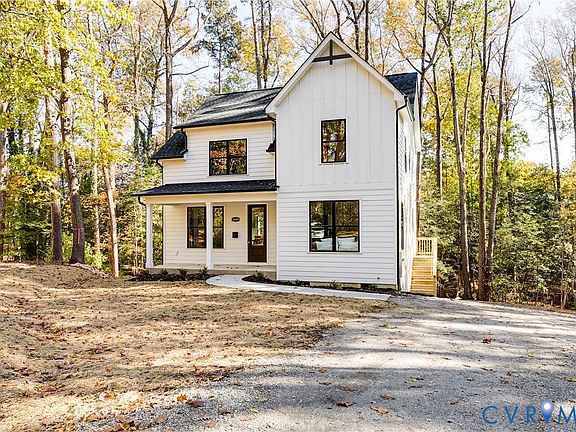 Discover this newly built modern farmhouse nestled in the wooded setting of RVA’s Brookbury neighborhood - a perfect blend of style, space, and serenity! Step onto the inviting covered front porch and into a stunning interior featuring tall ceilings, recessed lighting, and site-finished hardwood floors throughout the main level. The bright and open living room flows into the dining area, where sliding glass doors lead to a raised side porch overlooking the trees and yard - a perfect place to spend your mornings! The impressive kitchen boasts white shaker-style cabinetry featuring soft-close dovetail drawers, Quartz countertops, a tile backsplash, roll-out pantry shelving, and a large center island with pendant lighting and tons of seating. Just off the kitchen, a custom mudroom offers built-in cabinetry and generous storage - the perfect drop zone. A first-floor bedroom provides flexibility for guests or a home office, with easy access to a full hall bath featuring a Quartz vanity and tile-surround tub/shower. Upstairs, you’ll find three spacious bedrooms, including a luxurious primary suite with a massive walk-in closet and an ensuite featuring a double Quartz vanity, private water closet, garden soaking tub, and a walk-in shower with bench, niche, dual showerheads, and frameless glass door. The Jack-and-Jill bath connecting the two secondary bedrooms offers another double Quartz vanity and tile-surround tub/shower. A side-by-side laundry closet rounds out the second floor with both washer and dryer included! And don’t miss the huge basement - home to the rear-loading garage and endless possibilities for a rec room, home gym, or workshop. Set on a quiet cul-de-sac with upscale finishes and real hardwoods throughout, this home defines modern farmhouse living at its best — stylish, spacious, and surrounded by nature.