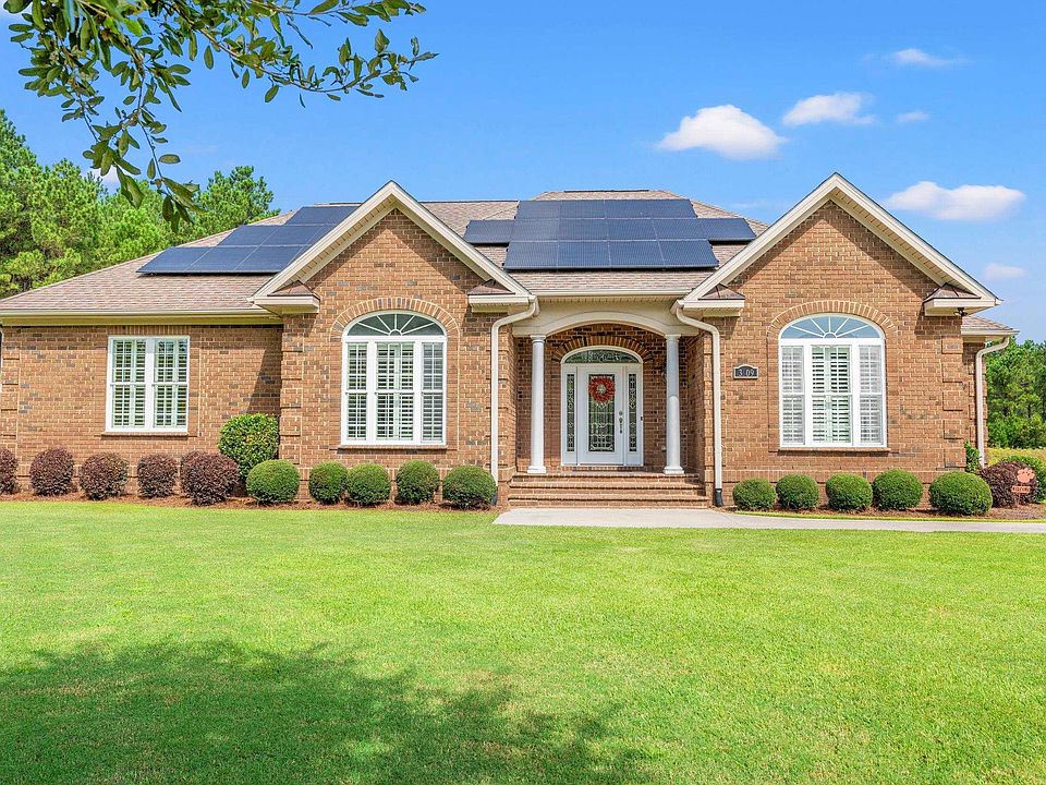 Welcome home to this beautifully maintained, custom-designed residence located in the Long Avenue Extension area of Conway! Nestled on 1.1 acres with NO HOA, this stunning 3-bedroom, 2.5-bathroom home perfectly blends modern conveniences with timeless Southern charm. Step into the foyer and admire the lovely hardwood floors.The formal dining room features tray ceilings and plantation shutters, which can be found throughout the home. The chef's kitchen boasts stainless steel appliances, granite countertops, a large sink, and soft-close custom cabinetry with built-in pantry storage. The center work island includes an additional sink and breakfast bar. Adjoining the kitchen is a cozy sitting room, perfect for morning coffee or reading. The great room, overlooking the backyard, features tray ceilings, a gas fireplace, built-in cabinets, and a Bowman speaker system, making it such an inviting space for entertaining or relaxing. Your primary suite includes a massive walk-in closet with custom built-ins and a convenient laundry drawer. The spa-like bathroom offers a large tiled shower, a soaking tub, and dual vanities. Practical features abound: a spacious laundry room, a 2-car garage with an additional third bay for a golf cart or lawnmower (plus work area), and a fully insulated, floored, and ventilated storage area over the garage. The outdoor living space is truly a highlight! The expansive back porch and patio include a built-in sink, gas grill, and large gas fire pit, making it ideal for year-round gatherings. The back porch, complete with three ceiling fans and a mounted TV extend your living space outdoors in style. Additional upgrades include: irrigation system, security system and solar panels. Arrange your private showing today!