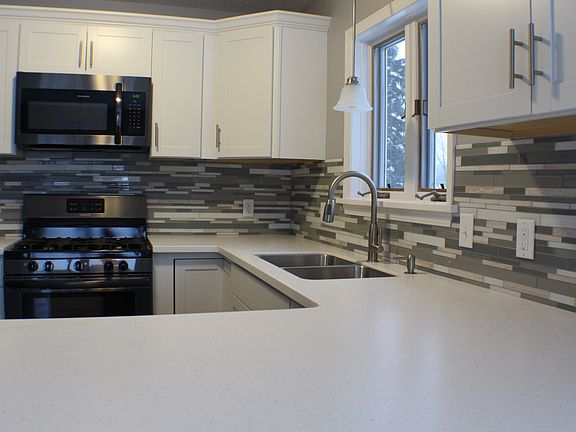 Stunning raised ranch, has been beautifully renovated from top to bottom! The lower level includes a second kitchen and living area which could be used as an in-law or teen suite. Upgrades include a completely remodeled kitchen with new cabinets, new solid surface countertops, glass tile backsplash, matching black stainless steel appliances and new floors. New lighting fixtures, new plugs and switches throughout the house. All new interior doors and fresh paint throughout. Brand new frontload washer and dryer are included. Both bathrooms have been completely remodeled with new flooring, vanities, mirrors and fixtures. High efficiency furnace, high efficiency water heater and central air! Exterior upgrades include a new roof, freshly stained deck, and new shutters.