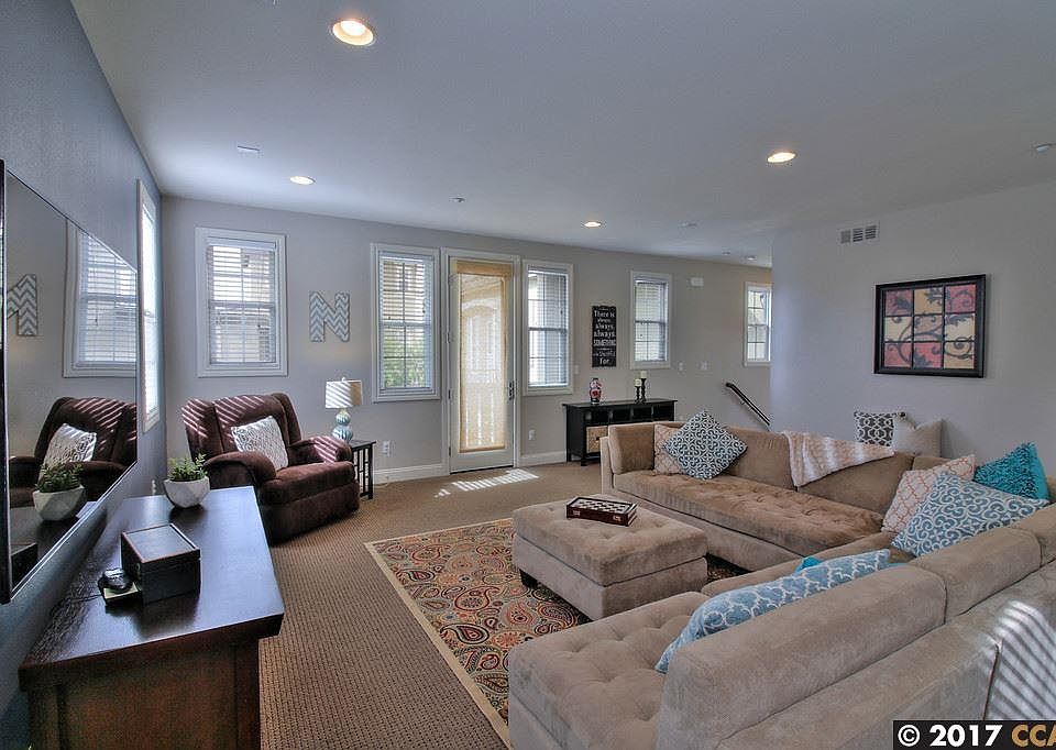 Beautiful home in Sorrento @ Dublin Ranch. Great open concept floor plan! Spacious living room with fireplace, formal dining area with French doors to rear yard and large sitting area. Gourmet kitchen is complete with SS appliances, slab granite counters, dark Alder cabinets and plenty of counter and storage space. Soaring ceilings, crown molding, Travertine flrs. Loft + expansive bonus / media room offers great flexible space. Master bedroom w/balcony & walk-in closet. Fantastic community pool, spa, fitness center, billiards room and clubhouse!