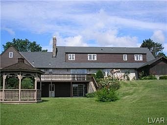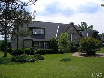 Spacious Custom built cape situated on 2 plus acres in beautiful Lowhill Township. This home features over 3700 SF of living space, not including the Huge finished walk out lower level. There are 3 nice sized bedrooms on the 2nd floor and 1 on the 1st floor. The 2nd floor also includes a semi finished loft/attic area above the garage with additional access from its own exterior staircase ( Ideal for extended family quarters ) Other interior features include a large entry foyer, 1st floor family room with brick fireplace, 1st floor laundry, eat-in kitchen and formal dining room. The exterior of the home has a screened-in patio with great views of the countryside. In addition to the attached 2 car garage there is a Multi-level detached garage with 2 bays at grade level and an additional garage door with access to lower level. Quick settlement possible. Taxes are projected to decrease with New 2013 Lehigh County Tax assesment to $7724.64