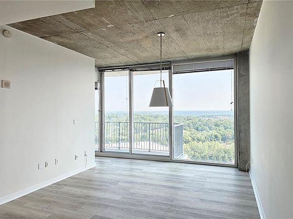 Investors or Homeowners dream. This is the only unit that has a permit to lease unit immediately.Experience elevated living in this beautifully appointed 17th-floor condo featuring a full wall of windows that flood the space with natural light and offer sweeping panoramic views of the city skyline and Kennesaw Mountain. SelLer has done it all, FRESH PAINT, NEW FLOORS, NEW COUNTERS, RENOVATED KITCHEN AND BATHROOM. This 1-bedroom, 1-bath home boasts soaring high ceilings and striking architectural elements, including exposed concrete beam walls that lend an industrial-chic, loft-style aesthetic. The open-concept layout is complemented by new appliances, blending sleek modern efficiency with touches of rustic charm. Perfect for professionals or anyone seeking stylish urban living with a unique character, this condo delivers both comfort and sophistication in a vibrant, scenic setting.