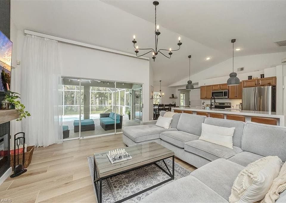 Beautifully renovated! Excellent Close-In Location - West of Wilson on 2.27 Acres! New Roof! Porcelain tile flooring throughout, beautiful quartz cascading counter tops and bar that seats 6, wood-burning and electric fireplaces, spacious lanai with heated saltwater pool. Enjoy a gated entry with asphalt circle drive and side loading garage, storage shed with roll-up door, fenced area for pets, fire pit area, whole house reverse osmosis system, plumbing pipes replaced and A/C under warranty. Great location near Collier County Library, Walgreens, Tractor Supply and Collier County Fire and Emergency Services!