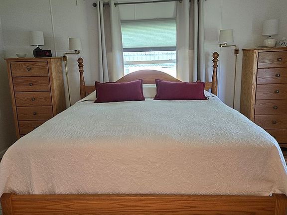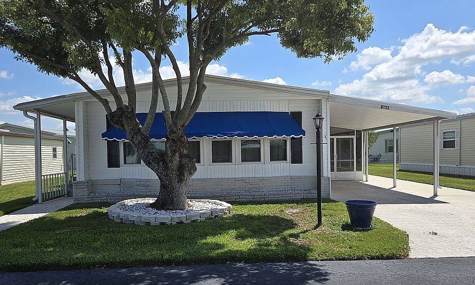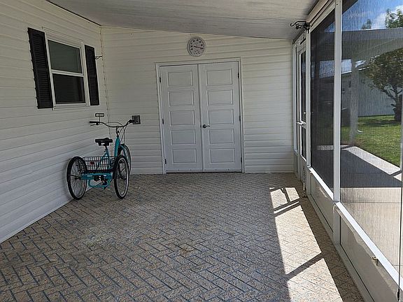 TURN KEY - Fully Furnished manufactured home in over 55 community. Updated within the last 3 years. New soft close cabinets, newer AC, moisture wrap, and roof. Cypress laminate flooring with Spillrepel throughout. 8x12 Florida room; 12x22 screen room. Professionally painted inside one year ago. Large 12x12 shed with workshop. Laundry room inside. Golf cart is included. Fully equipped for immediate use, including linens, appliances, pots, pans, dishes, etc.