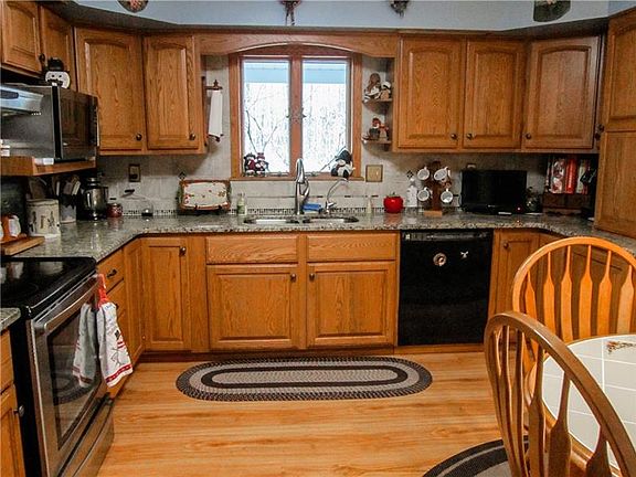 When you pull into this home you will be welcomed by a beautiful stone entrance with tiered landscaping. Country at its finest, however, close to everything. Just over 5 minutes to 28, restaurants, shops, etc. Great over-sized split entry, it is unique that it has a work shop that could be converted to an extra bedroom or a huge office. The covered back porch has built in picnic table and benches all with a wooded back drop. Plenty of room for a garden, fire pit, and a family yard games. Newer oak kitchen with granite counter tops and stainless steel appliances. Lower level has built in book shelves and a brick fireplace with gas log insert.