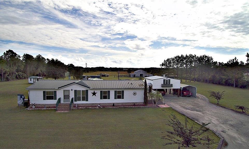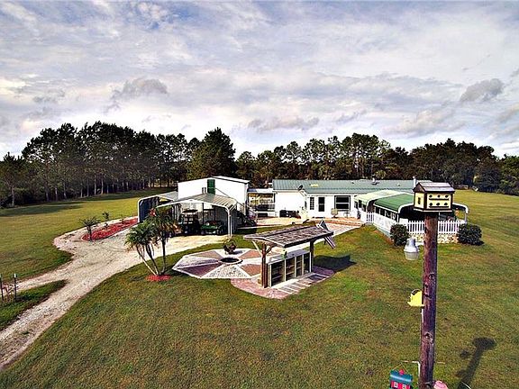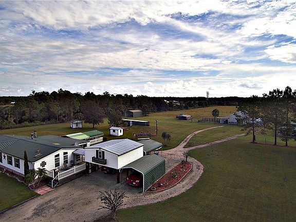 Osteen 10 acre FARM on a corner lot LISTED BELOW APPRAISED VALUE. Privacy and tranquility are what await you on this well developed slice of heaven. Bring your horses and enter through the electronic locking gate and drive past the peaceful front pond on your way to ample covered parking. Well kept and move-in ready, this 3 bedroom 2 bath, split floor plan home has tons of storage. Just check out the photos of the pantry room! The living room and the bonus room both boast a wood burning fireplace. Separate office adjoining the kitchen. Entertain your friends at the large bar in the bonus room! Master bath has granite counter tops and large granite wall tiles. Porcelain tile, hardwoods and laminate throughout - no carpets! Go off-grid with the whole house generator! This home comes with it's own fully equiped Hurricane safe-house, a partially buried shipping container. Multiple out buildings including an expansive and divided barn with pens and corrals for pigs, chickens and cattle. There's even more storage above the carport area! Make your offer quick, this is a dream homesite that won't last.