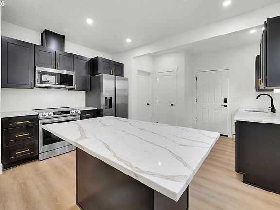Completely updated and move-in ready, this property features a new roof, siding, electrical, plumbing, HVAC, and windows. The home was professionally redone by Picture Perfect construction, offering peace of mind for years to come. Ideally located betweendowntown and the University of Oregon campus, it’s a prime investment opportunity with residential/commercial zoning and potential for development of up to 4 units. The beautifullyremodeled interior boasts modern amenities from new flooring to lighting, where every surface has been replaced. The main floor features a sleek kitchen with quartz countertops, island, andstainless steel appliances; plus a dreamy main-level primary suite with a walk-in closet. Upstairs you'll find 4 additional bedrooms along with a third full bathroom. The spacious parking area behind the home provides a blank canvas for additional use or expansion. Low property taxes are a huge bonus!