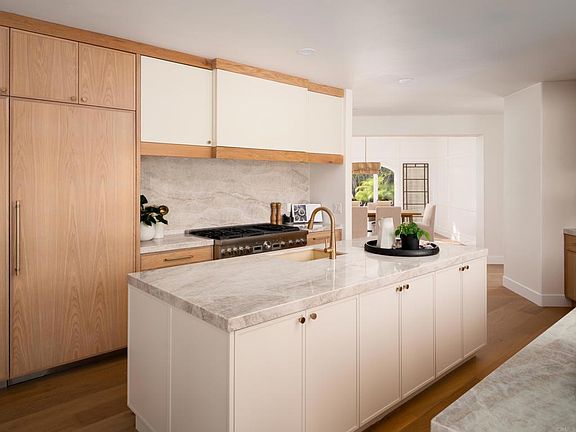 Welcome to 361 Flores De Oro, an exquisite Covenant estate located within the prestigious gated community of South Pointe Farms. This beautifully updated home spans 5,248 square feet and sits on a sprawling, privately gated, 4.17-acre lot, providing both privacy and luxury in one of San Diego’s most coveted neighborhoods. The home boasts five ensuite bedrooms, including a master suite located on the main floor, offering convenient single-level living with the addition of two private suites upstairs. The recent, comprehensive renovations are immediately noticeable with brand-new white oak floors throughout, creating a seamless flow between each space. Every interior surface has been meticulously updated, giving this home a fresh, modern feel while maintaining its timeless elegance. The gourmet kitchen is a true chef’s dream, outfitted with top-of-the-line Thermador and Wolf appliances, custom cabinetry, and Taj Mahal quartzite countertops. The open-concept design integrates the kitchen with the adjacent living areas, making it perfect for both entertaining and daily family living. New HVAC systems ensure year-round comfort throughout the home. Step outside, and you’ll find the same attention to detail in the extensive exterior updates. The property has been freshly painted, and the outdoor living space is enhanced by a built-in firepit with seating—ideal for cozy evenings under the stars. The landscape is both beautiful and low-maintenance, featuring succulent gardens, raised planters, and mature trees, offering a serene and private escape. For outdoor enthusiasts, a bocce ball court is the perfect place to unwind and enjoy the Southern California sunshine. This property not only provides ample space and luxury but also offers the quintessential Covenant lifestyle. Enjoy 60 miles of equestrian and pedestrian trails, along with access to the Rancho Santa Fe Golf Club (separate membership for golf/tennis) and a range of exclusive amenities. This is also zoned for the highly desired Roger Rowe K-8.