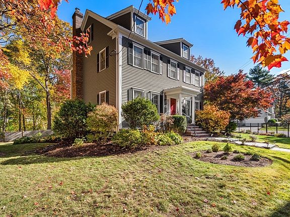 Welcome home to this beautiful 4-bedroom, 2.5-bath Colonial set on a large, level lot surrounded by mature landscaping. This timeless home offers high ceilings, rich hardwood floors, and fine details throughout. The open-concept kitchen and family room create a perfect gathering space, featuring a fireplace, stone countertops, island and upgraded stainless steel appliances, including an induction range and a wine chiller. The formal dining room and living room featuring crown molding, provide elegant yet comfortable areas for entertaining. Upstairs are 4 beds and 2 baths. A convenient back staircase leads to a bright bonus room ideal for a home office or playroom. The walk-up attic and walk-out lower level with slider, offer exceptional expansion potential to make this home your own. Enjoy the charm of classic architecture paired with modern updates all in a sought-after neighborhood close to top-rated schools, downtown shops and restaurants, major routes, and public transportation.