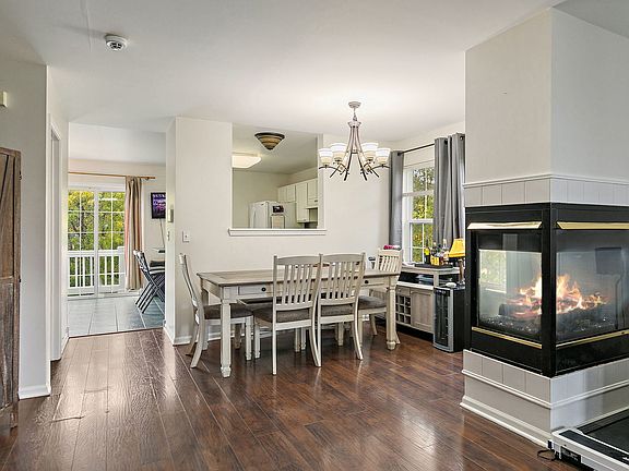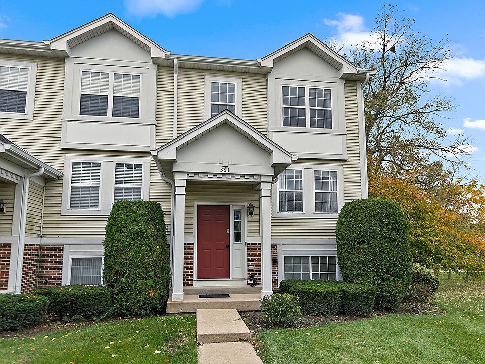 Spectacular end unit, one of the largest models in Cranberry Lake, this three bedroom townhouse, offers an open floor plan and is located next to an open park with walking trails providing beautiful views and privacy. Rich dark floors, and bright windows on the main level welcome you home. With a multi-sided gas fireplace situated between the living room and dining room creating a cozy space for quiet nights at home or entertaining guests. The kitchen offers ample cabinet and counter space, with a center island and breakfast table nook making meal preparation and everyday dining a breeze. The sliding glass door leads to the recently updated balcony with views of the open green space, and the unique location with no neighbors behind the home creates the feel of your very own private driveway and serene views of the park. Finishing the main level is a large half bathroom with spacious storage closet. Retreat to your Primary suite with full master bath. Two additional bedrooms and second full bath makes this model unique with room for everyone, and no need to share bathrooms. Convenient second floor laundry completes the second level. Need more space? the partial English basement provides the perfect space for a family room, home office, exercise room or playroom, and easy access to the spacious attached two car garage. Enjoy everything maintenance free living has to offer with snow removal and common area maintenance. Recent updates include new roof, gutters, siding maintenance, a/c, water heater, second level carpet and new drive way. This home includes a Transferrable Diamond Level HWA home warranty good through March 2027 for additional peace of mind. Located Just 0.2 miles to Cranberry Lake Trail. Near Metra train & major roads for your work commute. Close to shopping, restaurants, entertainment, and parks.