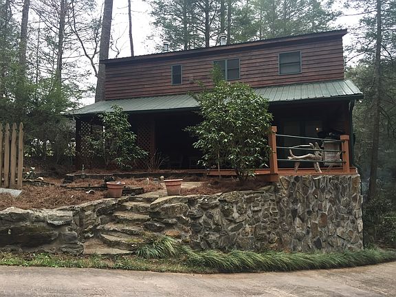 BEAUTIFUL PRIVATE OASIS ON 5.6 ACRES, SURROUNDED BY PEACEFUL FLOWING CREEKS! AMAZING VIEWS FROM THE HOME AND ALL THREE OUTDOOR TREX DECKS; HOME HAS 2 BEDS/2BATHS (HOWEVER, HAS 3 SEPARATE SLEEPING AREAS AND CAN ACCOMODATE SLEEPING FOR 9 PEOPLE - SO BRING THE ENTIRE FAMILY! BASEMENT WAITING TO BE FINISHED; OUTDOOR COVERED KITCHEN; HOT TUB DECK OVERLOOKING CREEK; FIREPIT DECK OVERLOOKING CREEK; THIS RUSTIC CABIN WILL AMAZE YOU ONCE YOU STEP INSIDE. WITHIN 2 MILES OF NORTH GEORGIA WINERIES!