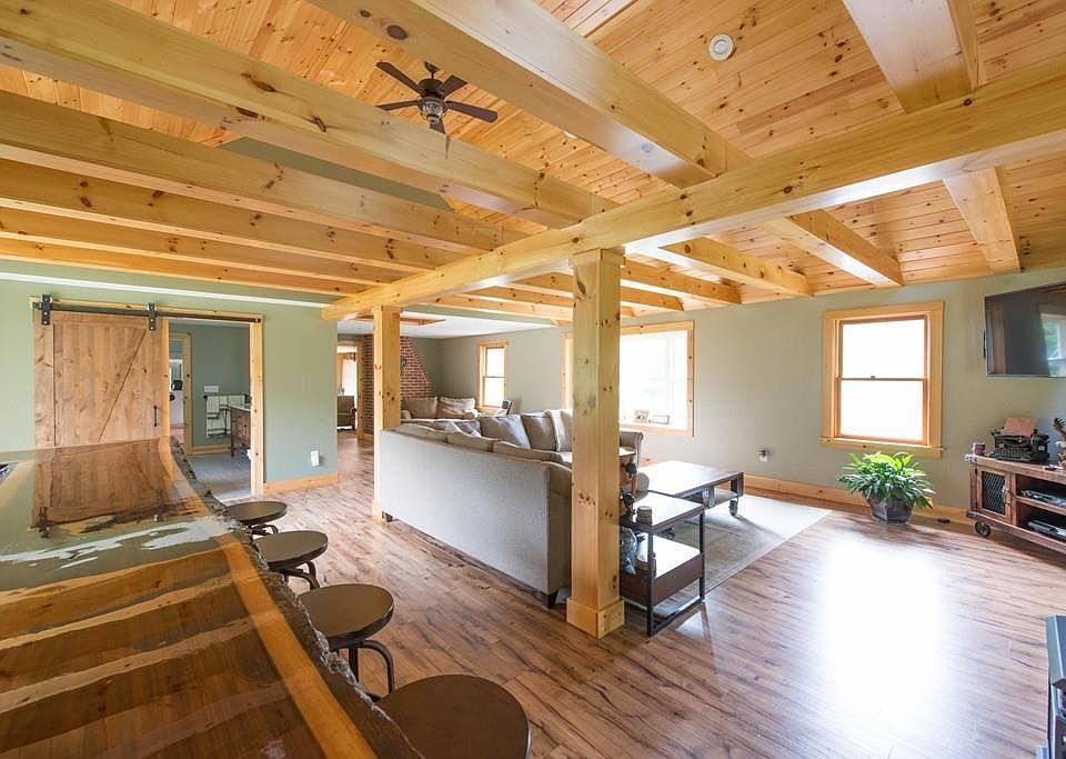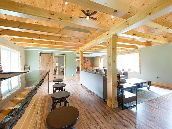 NEW PRICE!!Don't miss the opportunity to own this unique and wonderfully cared for Cape with a newly constructed family room and master bathroom. Finished in 2016, the family room is approximately 900 square ft. which include's a wood finished bar, pergola wood floors, wood ceilings beams, sliding barn door, a pellet stove, and a new roof. The master bathroom features a custom tiled shower, whirlpool tub, tiled floor, and double vanity. Enjoy your morning coffee in the 3-season porch overlooking the yard and woods. The yard provides plenty of room for entertaining and features a variety of trees and bushes. An additional pellet stove located in the living room provides plenty of heat for those cold winter months. Bonus room off the kitchen for a home office or media room. Wood floors in living room, dining room, and 3 bedrooms. Oversized two car garage with room for storage. Water well installed in 2012. House is wired for a generator.